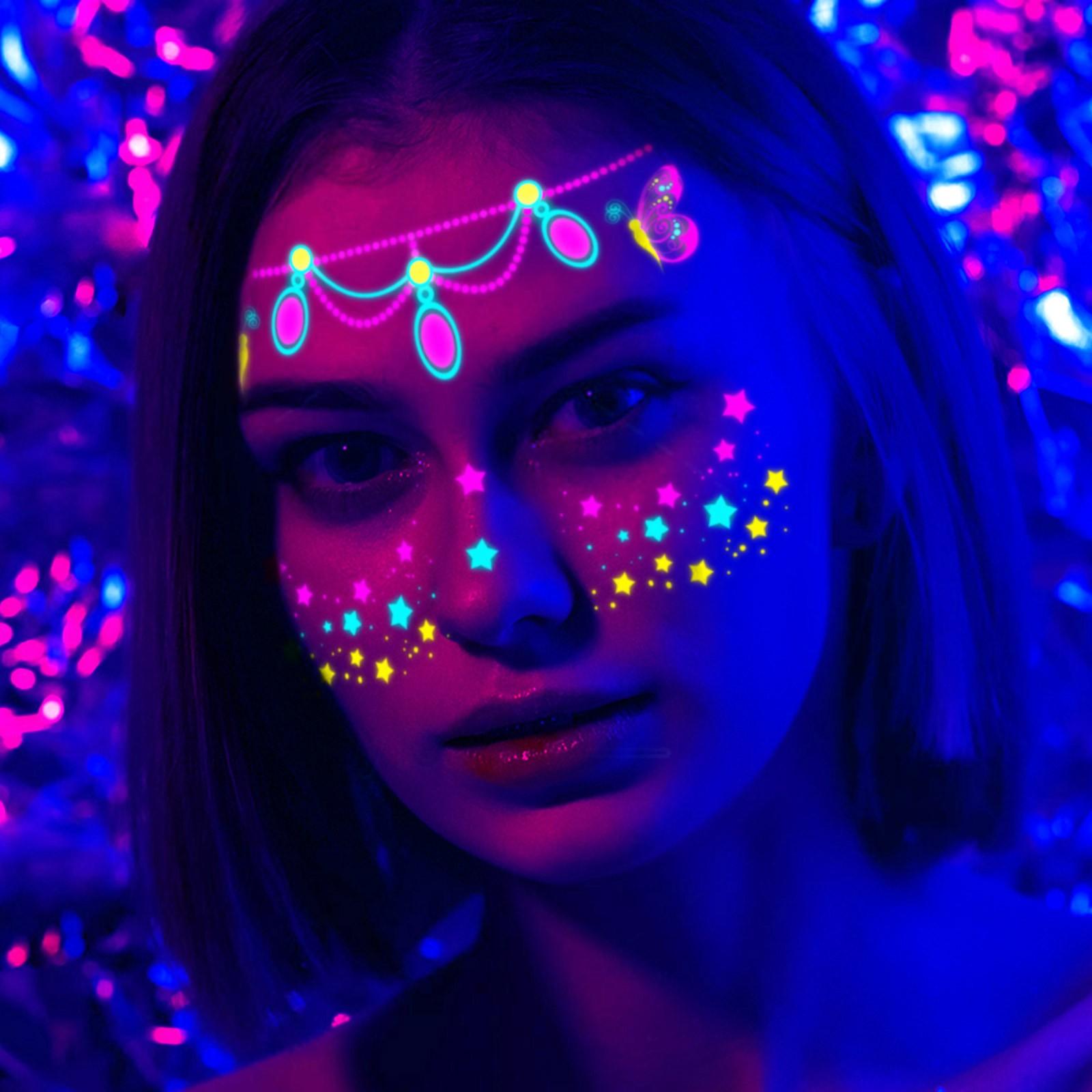 Карнавальный музыкальный фестиваль флуоресцентные наклейки для лица водонепроницаемые ночные клубы макияж шар неоновые светящиеся наклейки One Size