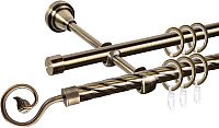 Карниз для штор АС ФОРОС Grace D16K/16Г + наконечники Завиток одинарный (1.8м, антик)