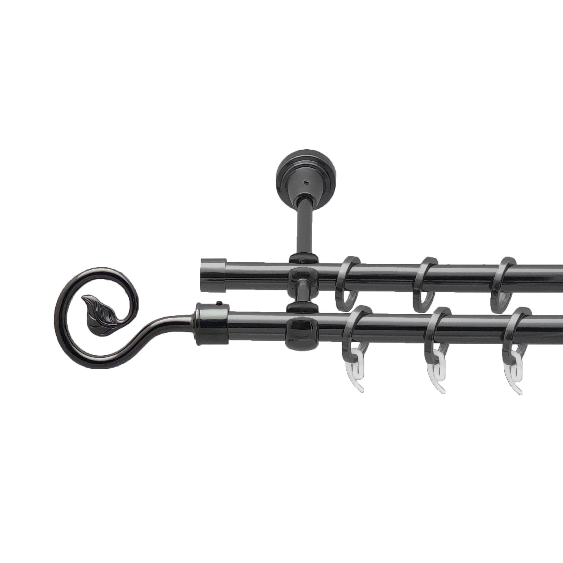 Карниз Orvit Лукка металевий дворядний відкритий гладка труба кільце фасонне металеве Онікс 16\16 мм 240 см