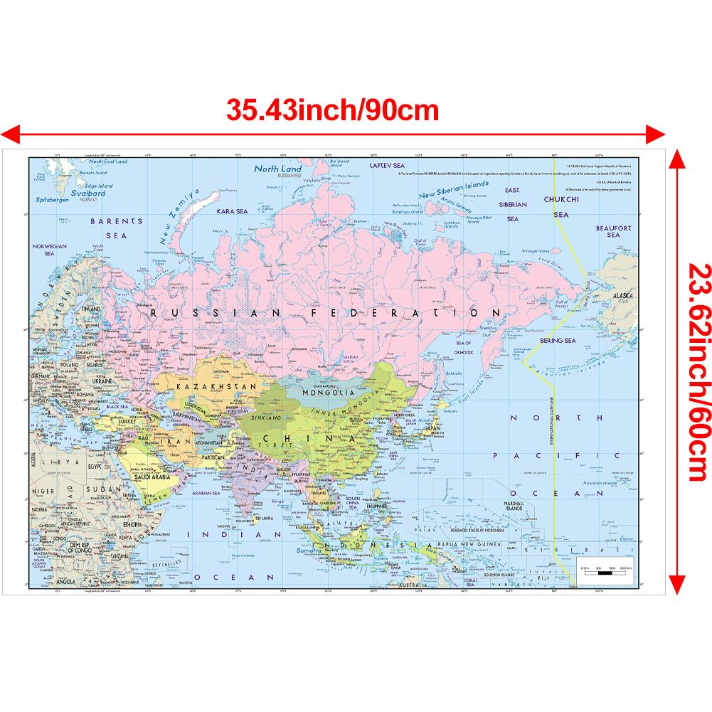 Карта Азии, без национальных флагов, большая карта, английская версия образовательной карты, декор домашнего офиса, школьные учебные принадлежности 3*2ft (90*60cm)