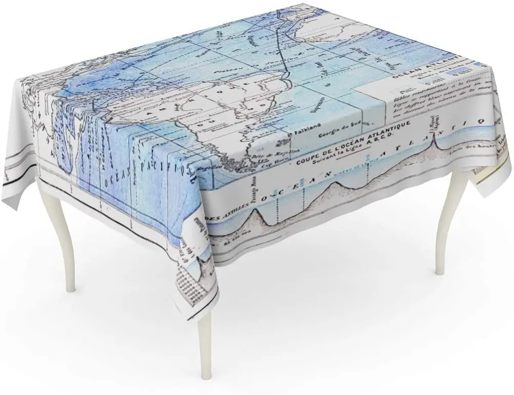 Карта Атлантического океана винтажная Выгравированная словарь слова и вещи скатерть