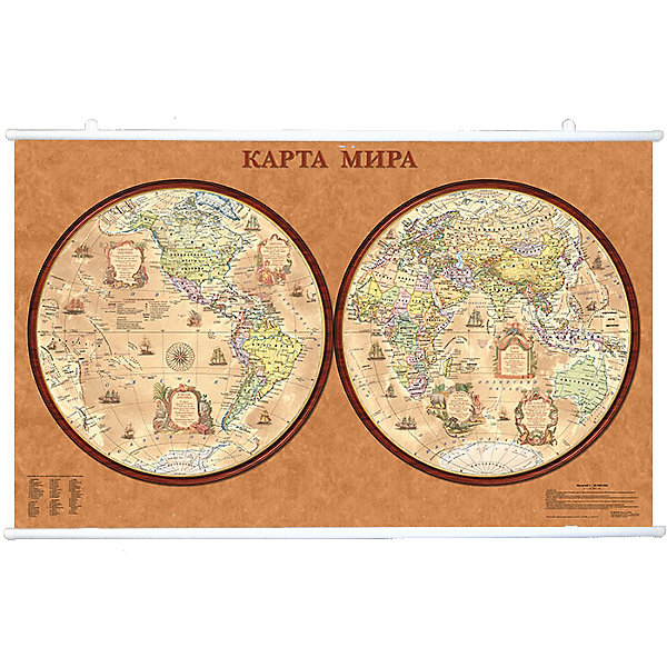 Карту мира, политическую, полушария стиль ретро, 1:34М на рейках можно купить к нашем интернет-магазине.