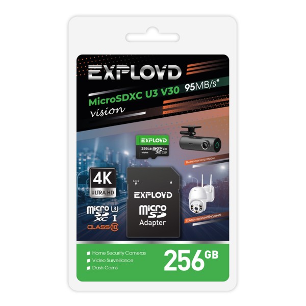 Карта памяти 256Gb microSDXC EXPLOYD Vision Class 10 UHS-I U3 V30 + адаптер (EX256GCSDXC10-U3-V30)
