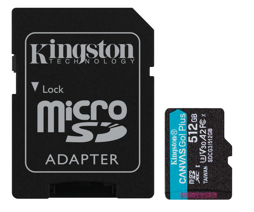 Карта памяти 512Gb microSDXC Kingston Canvas Go! Plus Class 10 UHS-I U3 + адаптер (SDCG3/512GB), SDCG3/512GB