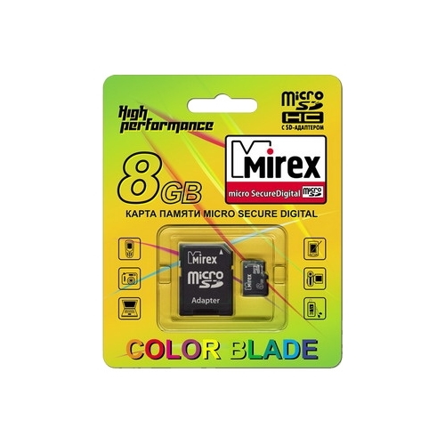 Карта памяти 8Gb microSDHC Mirex Class 4 + адаптер, 13613-ADTMSD08