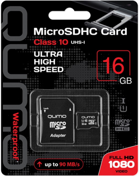 Карта памяти 16GB Qumo QM16GMICSDHC10U1 microSDHC Class 10 UHS-I + SD адаптер, QM16GMICSDHC10U1