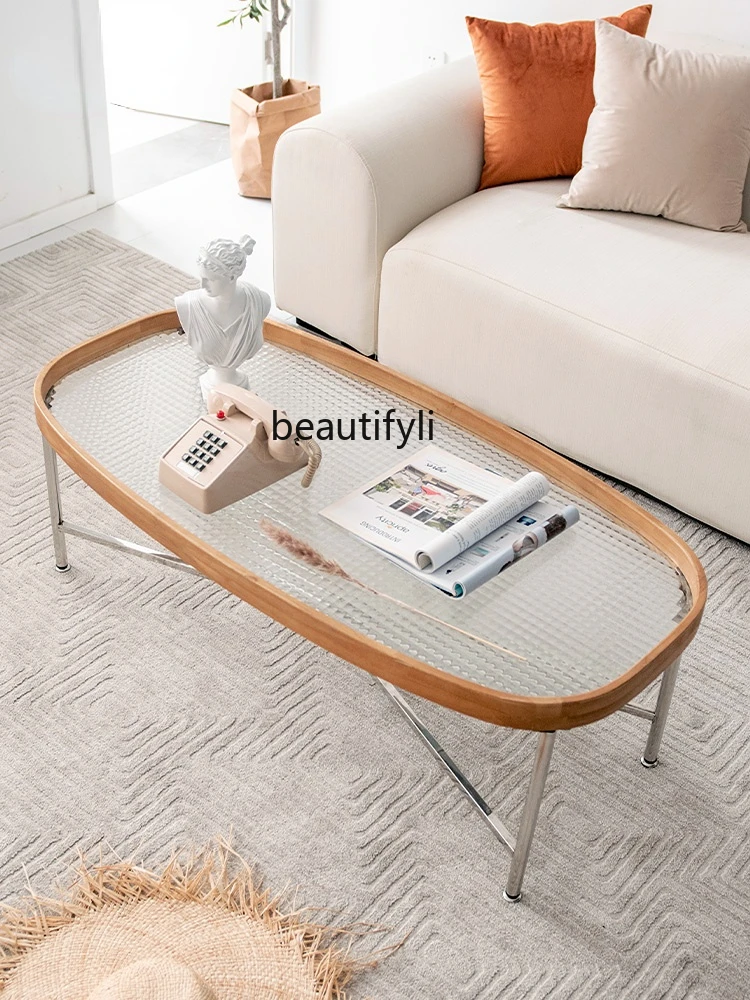 zq Nordic Stainless Steel Coffee Table Modern Living Room Solid Wood Minimalist Sofa Changhong Glass Table