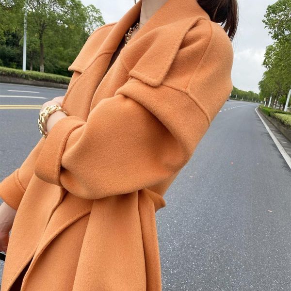 women's wool & blends off season high end thickened long woollen cloth fall / winter 2021 tweed coat double faced cashmere, Black