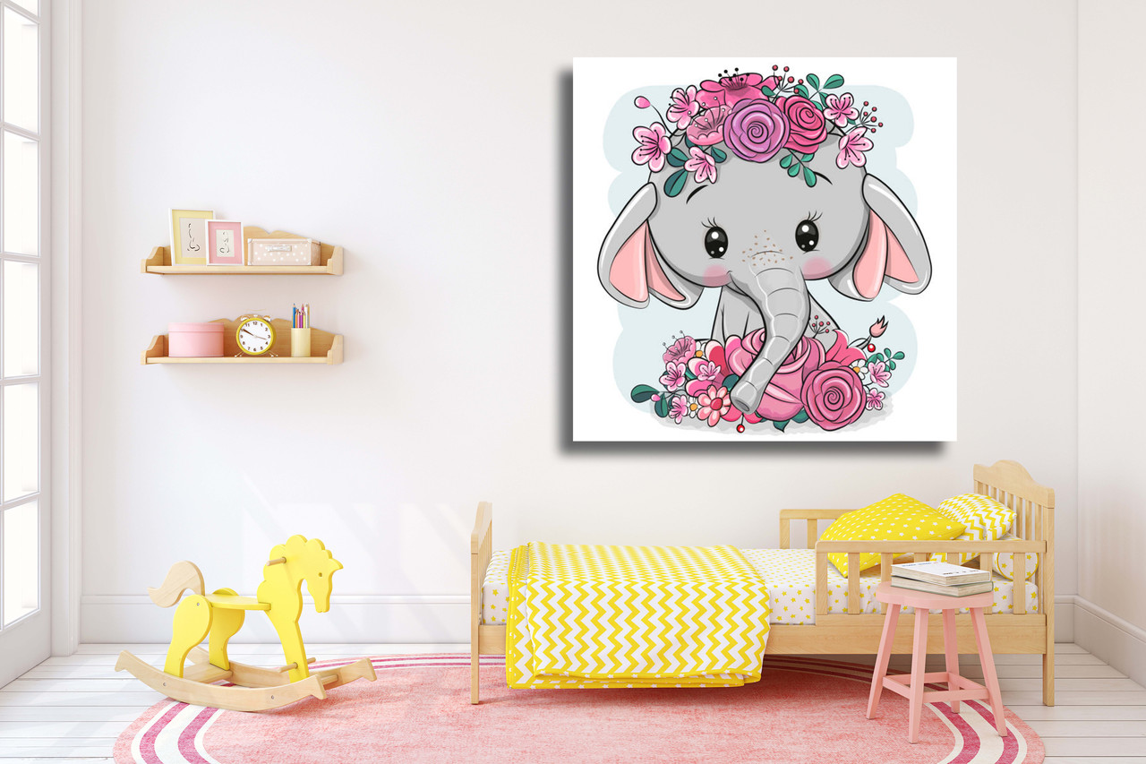 Картина в детскую на холсте Слоник в веночке 100х100