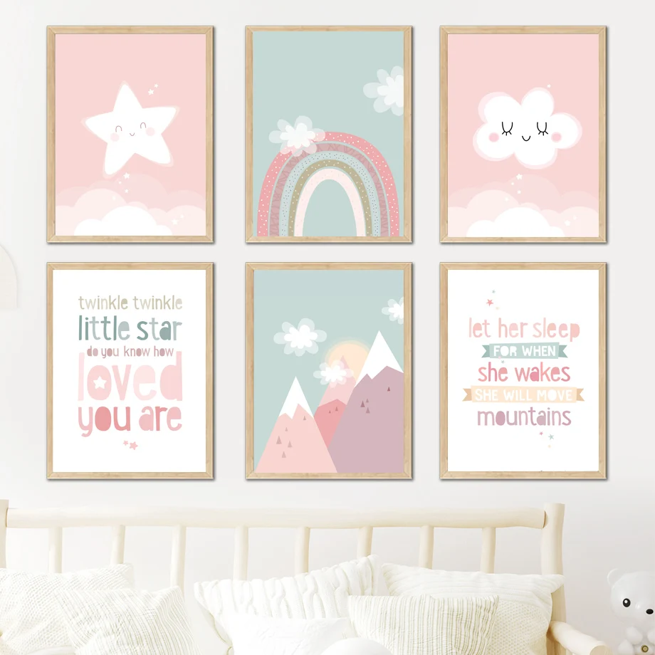 Картина для декора комнаты для девочки, розовый постер, Радужный холст, настенные картины, скандинавский розовый стиль, картины для спальни ...