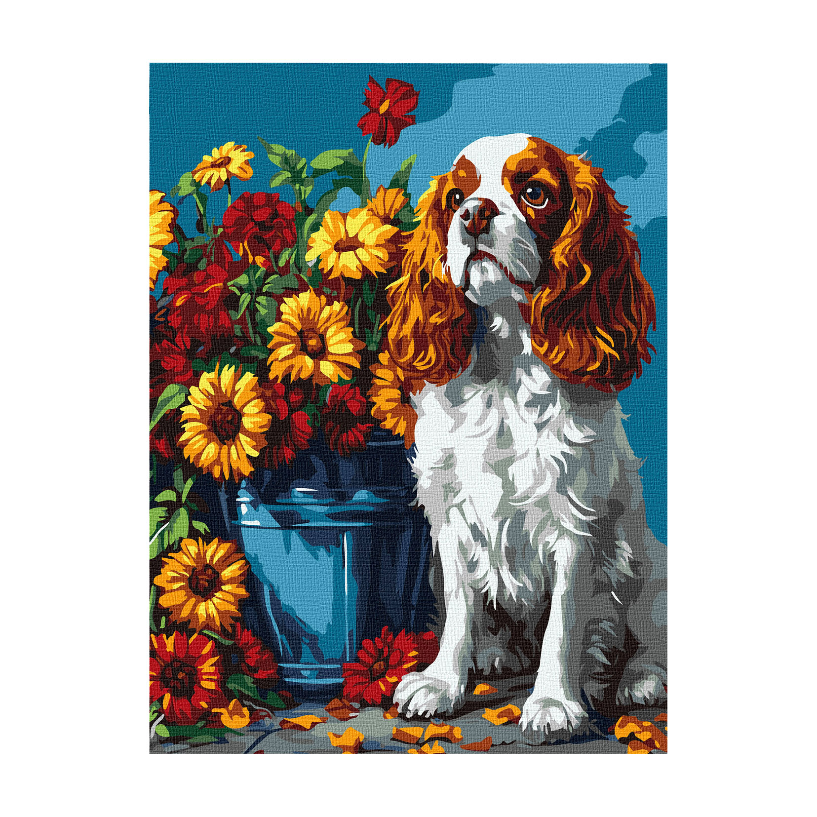 Картина за номерами Ideyka Спанієль та квіти, 30*40 см (KHO6673)