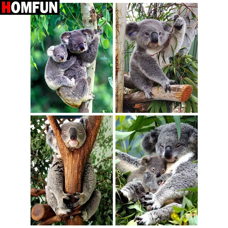 Картина из квадратных и круглых страз HOMFUN, 5D алмазная живопись, экологичные поделки, алмазная вышивка «коала», домашний декор