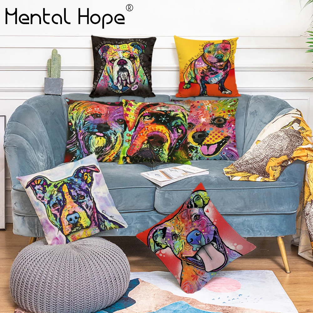 Картина маслом, квадратная наволочка для подушки, мультяшная собака, льняная хлопковая наволочка, домашний декор, наволочка для дивана/кров...