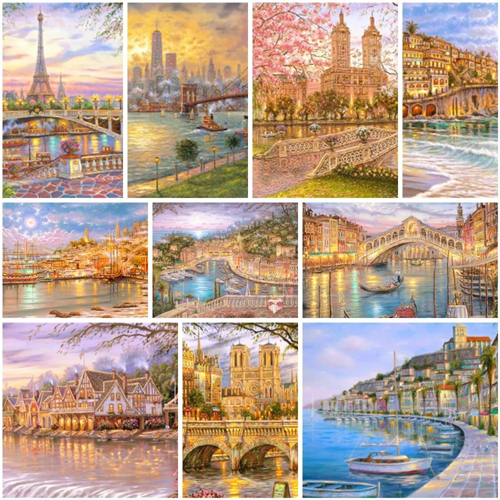 Картина маслом по номерам «сделай сам», пейзаж, архитектура города, подарок матери, ручная роспись, искусство на стену, гостиная, домашний декор, Лидер продаж 2023