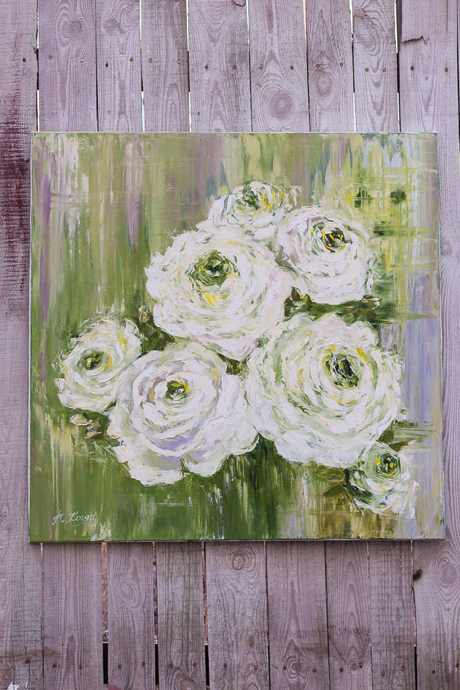 [html]Работа украинской художницы Татьяны Козяр"Белые розы"Картина написана маслом. Размер холста 90х90 см. Индивидуальная работа перспективного мастера.[/html]