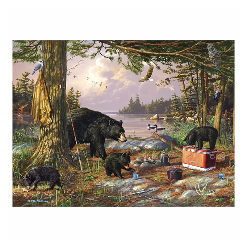 Картина-мозаика с изображением черного медведя
