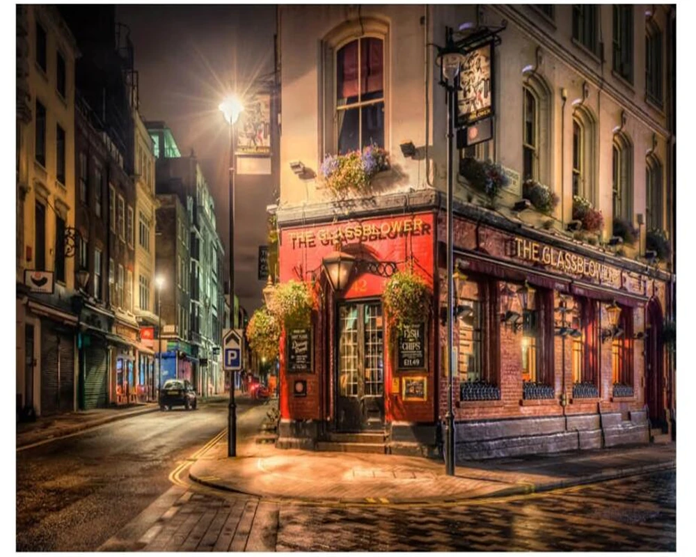 Картина на стену wellyu, на заказ, большая, с красивым теплым светильник Том, под углом улицы, магазина, бара, кафе, фоновая стена
