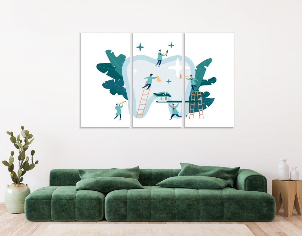 Картина на холсте Модульные Модульная картина A Group Of Dentists Take Care Of The Tooth 3 картины 70х140 см.