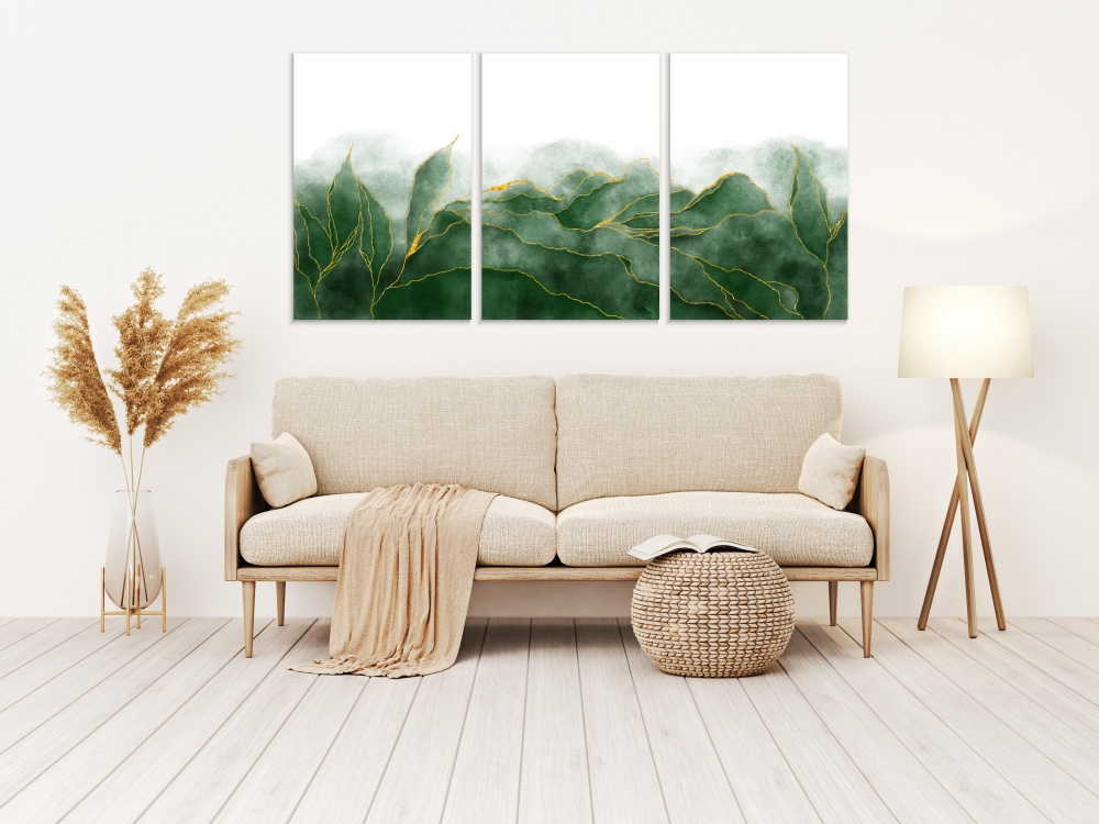 Картина на холсте Модульные Модульная картина Green Colors And Gold Veins 3 картины 40х80 см.