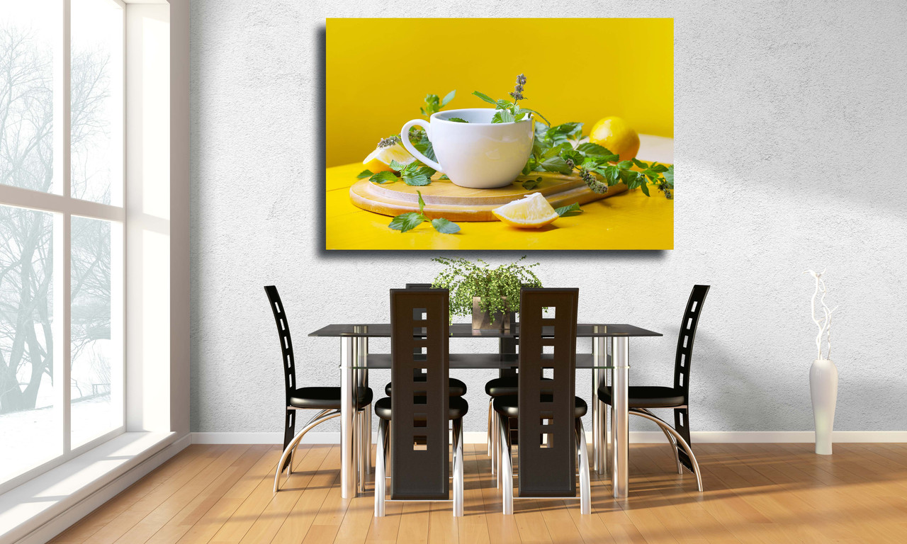 Картина на холсте Мятный чай с лимоном на желтом фоне 120х80