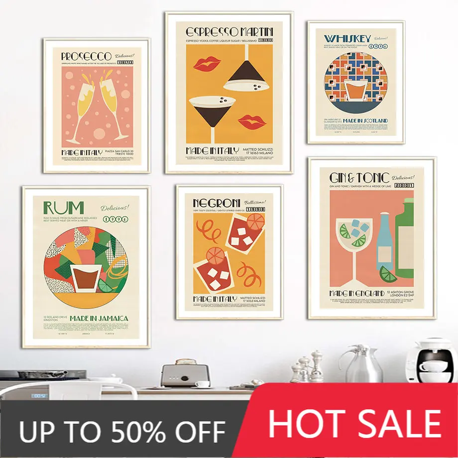 Картина на холсте с изображением ликера клуба Джина шампанского рома виски
