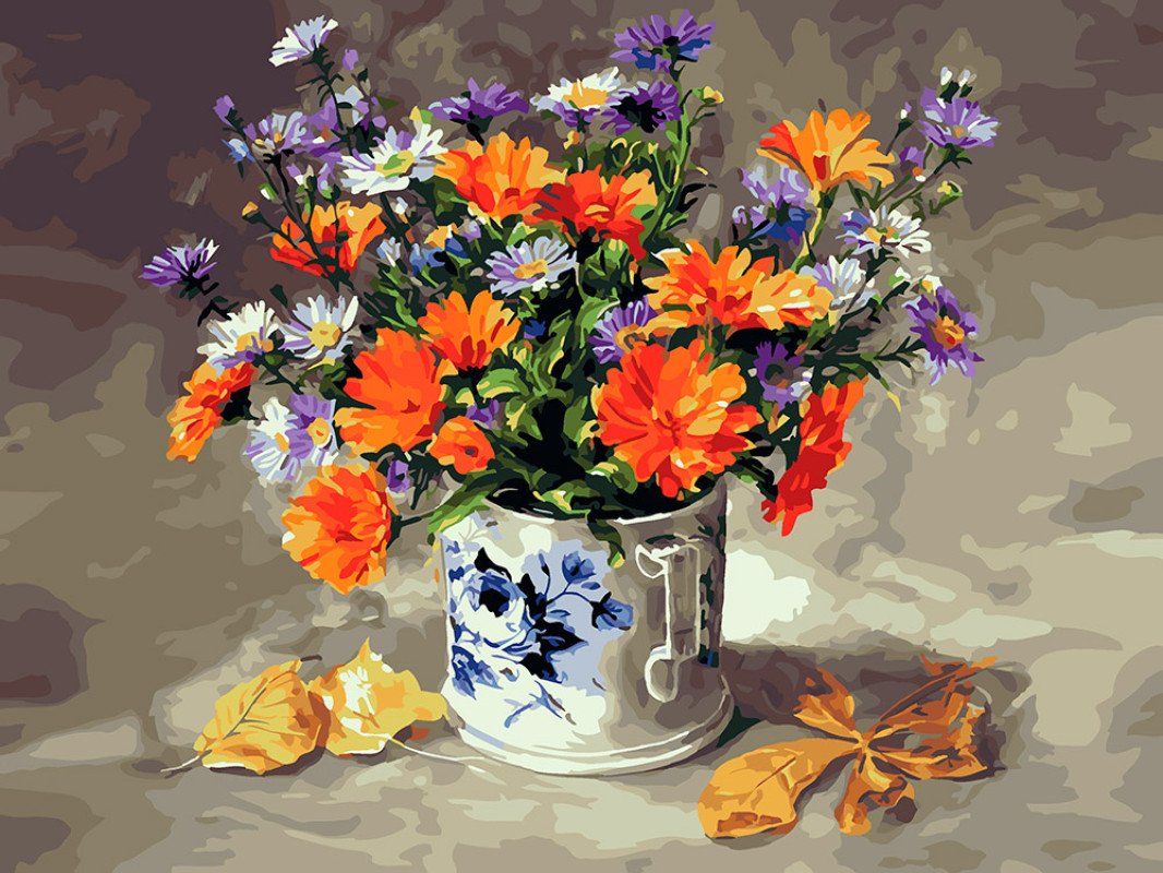 тематика цветы/растения, 33 цветов в наборе, очень сложный уровень, холст на подрамнике, серый, 40 x 30 см