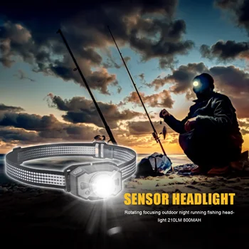 Mini Flashlight Lantern 210LM LED Sensor 360 Rotating Zoomable Focus Headlamps Compression Resistance Outdoor Fishing