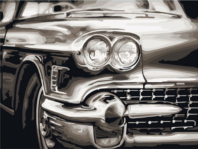 тематика транспорт, 24 цветов в наборе, сложный уровень, холст на подрамнике, белый/серый/черный, 40 x 30 см