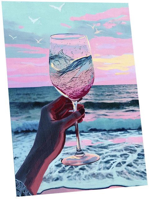 тематика еда/морской пейзаж, 24 цветов в наборе, холст на подрамнике, голубой/розовый, 40 x 50 см