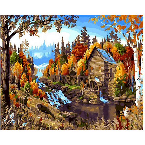 Характеристики: • материал: холст, картон, дерево • в комплекте: холст, краски, 3 кисточки, крепления на стену • уровень сложности: 5 • размер картины: 40х50 см • количество цветов: 28 • тематика рисунка: природа • упаковка: картонная коробка • вес упаковки: 750 гр • размер упаковки: 50х3х40 см На готовой картине можно увидеть осенний лес, деревья уже окрасили свою листву в разные цвета. Внизу протекает река и стоит водяная мельница. На небольшой полянке можно увидеть пару оленей. Подбирать цвета не нужно, все необходимые уже в комплекте, а рисунок, как и краски, пронумерованы. Холст уже натянут на деревянный подрамник, а закончив рисовать готовый шедевр можно повесить на стену, используя специальные крепления.