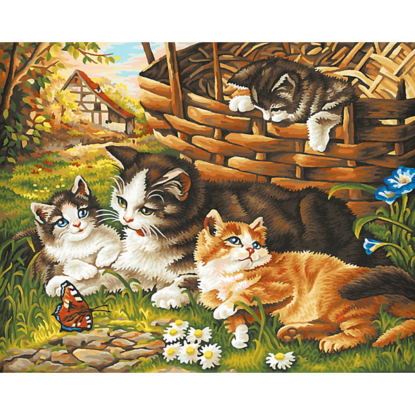 Картина по номерам с изображением милых кошечек. Необходимо раскрасить элементы красками, которые соответствуют номеру. Благодаря контрольному листу можно проверить цвет и избежать ошибок. Холст выполнен из многослойной бумаги с льняной структурой, которая подарит ощущение настоящей картины маслом. Занимательное увлечение развивает концентрацию внимания, а готовая картина станет отличным украшение интерьера.