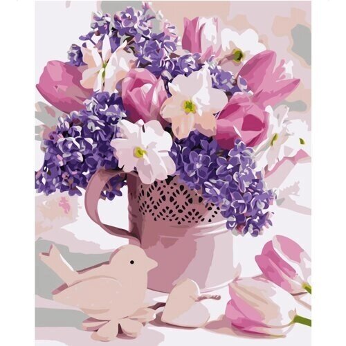 Картина по номерам Strateg Тюльпаны с серенью и нарциссами, 40х50 см