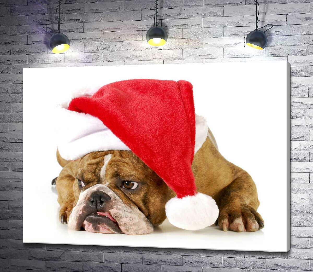 Картина ArtPoster Бульдог в красной шапке Санты 130x95 см Модуль №1
