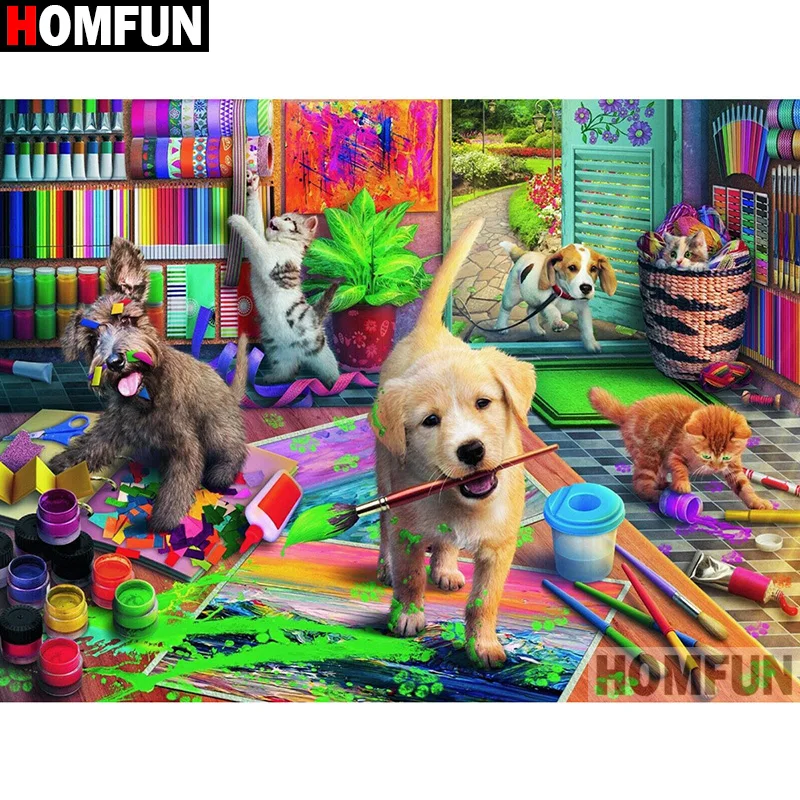 Картина HOMFUN с алмазной вышивкой, «животное, собака, кошка», алмазная живопись, полный квадратный фон
