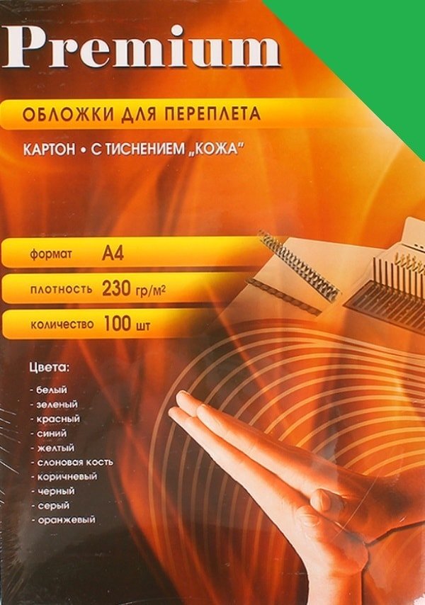 Картонная обложка для переплета Office-Kit с тиснением "кожа", А4, 230 г/м2 (зеленый)