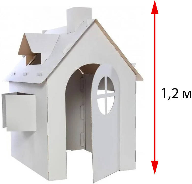 Детский картонный домик состоит из 7 сборных деталей, которые включают в себя: