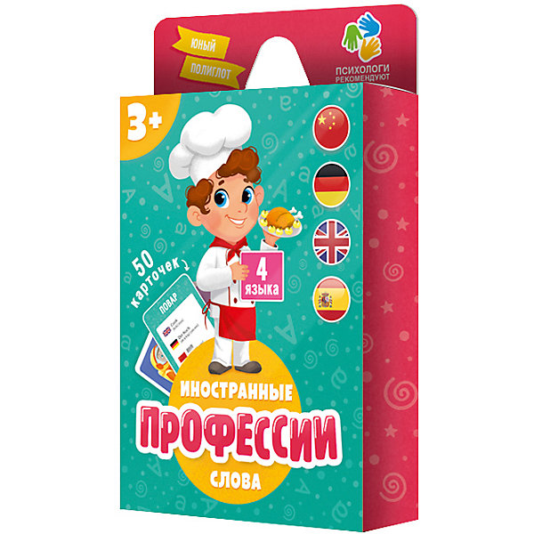 Веселая образовательная игра познакомит азами немецкого, английского, китайского и испанского языков. Простые правила и транскрипция будут понятны даже самым маленьким и позволят быстро запомнить много новых слов. Изготовлены из плотного материала, не выцветают и не расслаиваются по частом использовании.