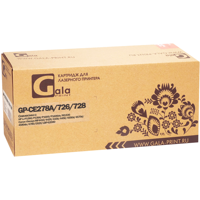 Картридж лазерный GalaPrint GP-CE278A/726/728 (CE278A/726/728), черный, 2100 страниц, совместимый для LaserJet P1560/P1566/P1600/P1606dn/M1536, i-Sensys MF4410/4420/4430/4450/4550d/4570d/4580dn/4780/D520/LBP-6200D