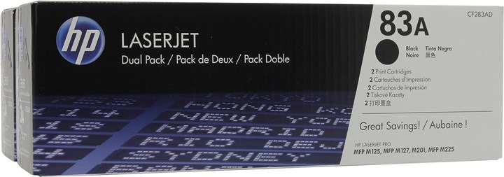 Картридж лазерный HP 83A/CF283AD, черный, 2 шт. шт., 1500 страниц, оригинальный для HP LaserJet Pro M201dw / M201n / M225dw / M225rdn / M127fn / M127fw, 83A