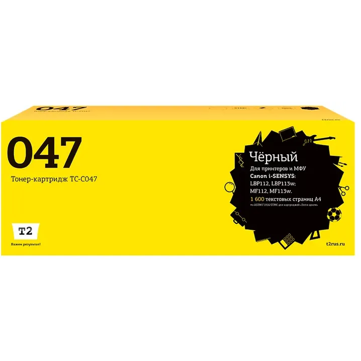 Картридж лазерный T2 TC-C047 (047/2164C002), черный, 1600 страниц, совместимый для Canon i-SENSYS LBP112/LBP113w/MF112/MF113w