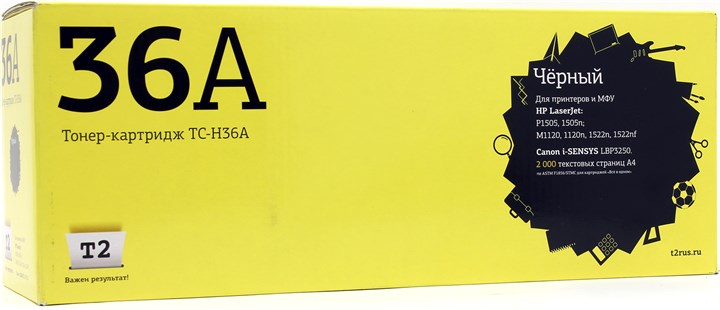 Картридж лазерный T2 TC-H36A (36A/CB436A), черный, 2000 страниц, совместимый для LaserJet P1505/P1505n/M1120/M1522n