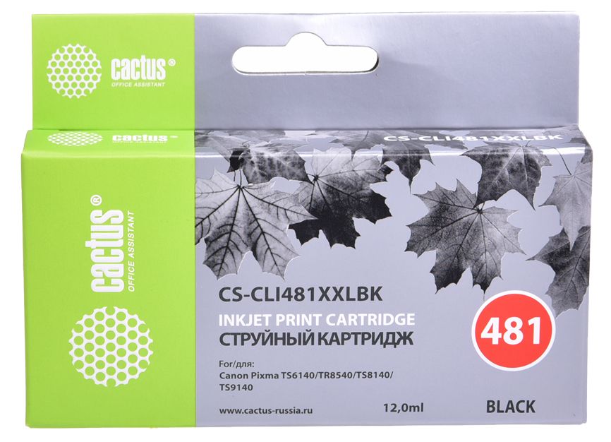 Картридж струйный Cactus CS-CLI481XXLBK (CLI-481BK XXL/2101C001AA), черный, совместимый, 12 мл, для Pixma TR7540/TR8540/TS6140/TS8140