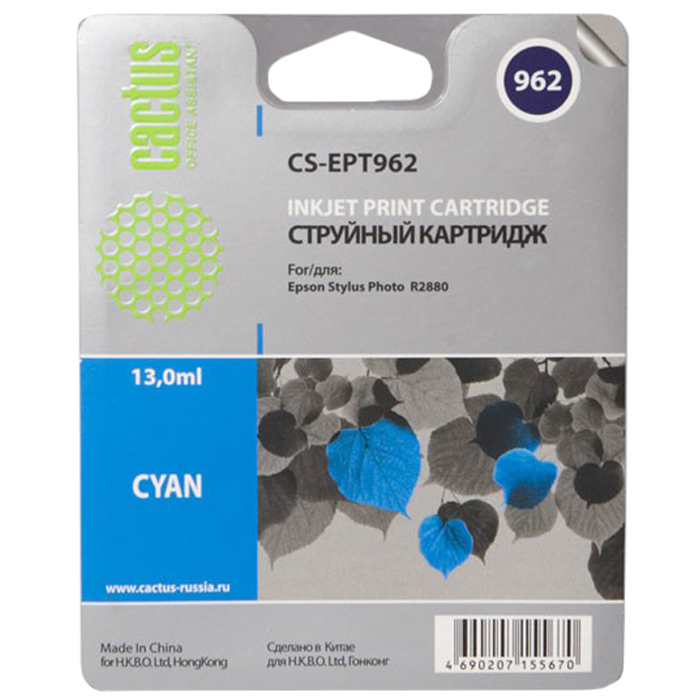 Картридж струйный Cactus CS-EPT962 (C13T09624010), голубой, совместимый, 13 мл, для Epson Stylus Photo R2880