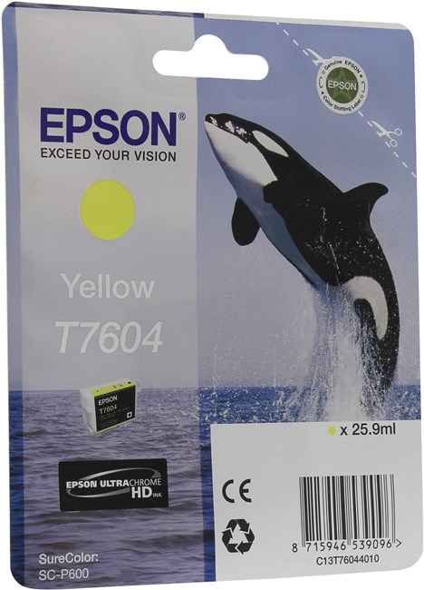 Картридж струйный Epson T7604 (C13T76044010), желтый, оригинальный, ресурс 2100 страниц для Epson Epson SureColor SC-P600, T7604