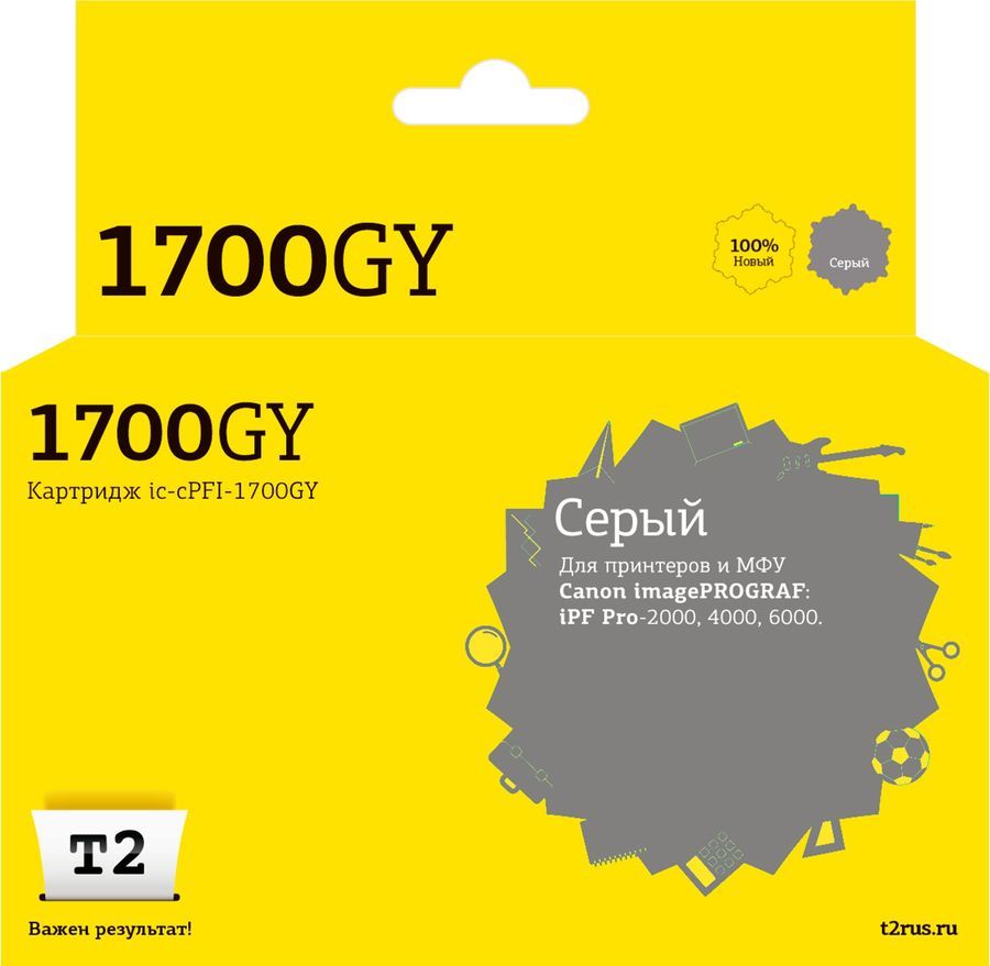 Картридж струйный T2 IC-CPFI-1700GY (PFI-1700GY/0781C001), серый, совместимый, 700 мл, для Canon imagePROGRAF iPF-PRO-2000/4000/6000