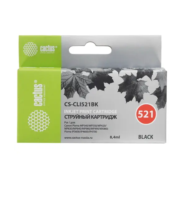 Картридж Cactus CS-CLI521BK для CANON PIXMA MP540/ MP550/ MP620/ MP630/ MP640/ MP660/ MP980/ MP990; iP3600/ iP4600/ iP4700; MX860, черный,9 мл, CS-CLI521BK