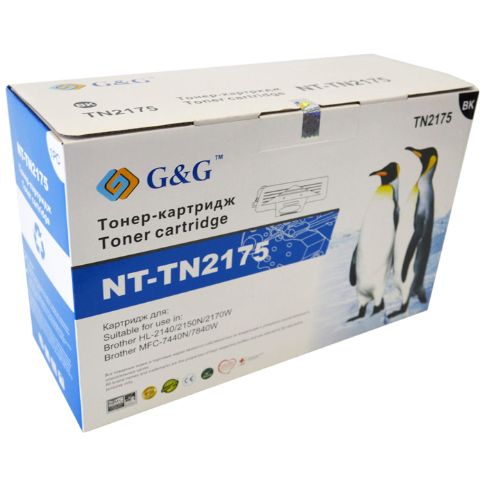 Картридж лазерный G&G NT-TN2175, черный, 2600 страниц, совместимый для Brother HL-2140R, HL-2142R, HL-2150NR, HL-2170WR, DCP-7030R, DCP-7032R, DCP-7040R, DCP-7045NR, MFC-7320R, MFC-7440NR, MFC-7840WR