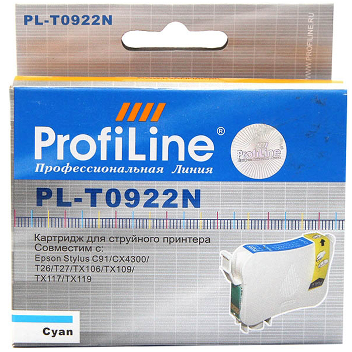 Картридж струйный ProfiLine PL-0922N-C (0922N), голубой, совместимый, 495 страниц, для Epson C91/CX4300/TX106/TX109/TX117/TX119/T26/T27