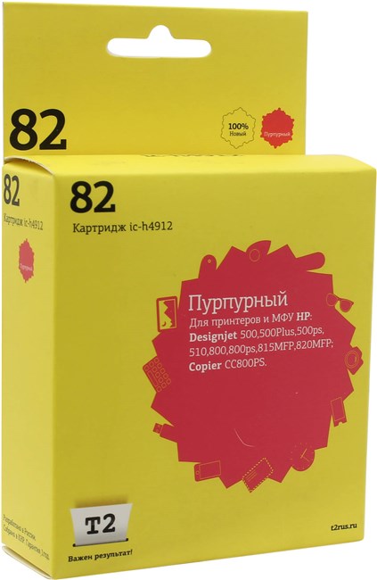 Картридж струйный T2 IC-H4912 (№82/C4912A), пурпурный, совместимый, для HP 500/510/800/815MFP/820MFP/CC820PS