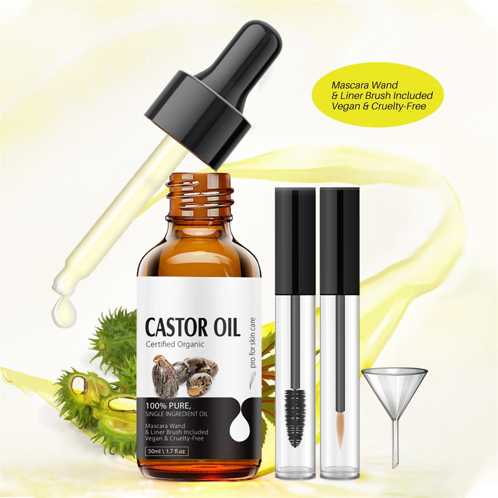Касторовое масло для роста волос способствует росту волос, делая волосы, ресницы и брови гуще и пышнее. Увлажнитель кожи и уход за волосами. Стартовый набор 50 мл. белый